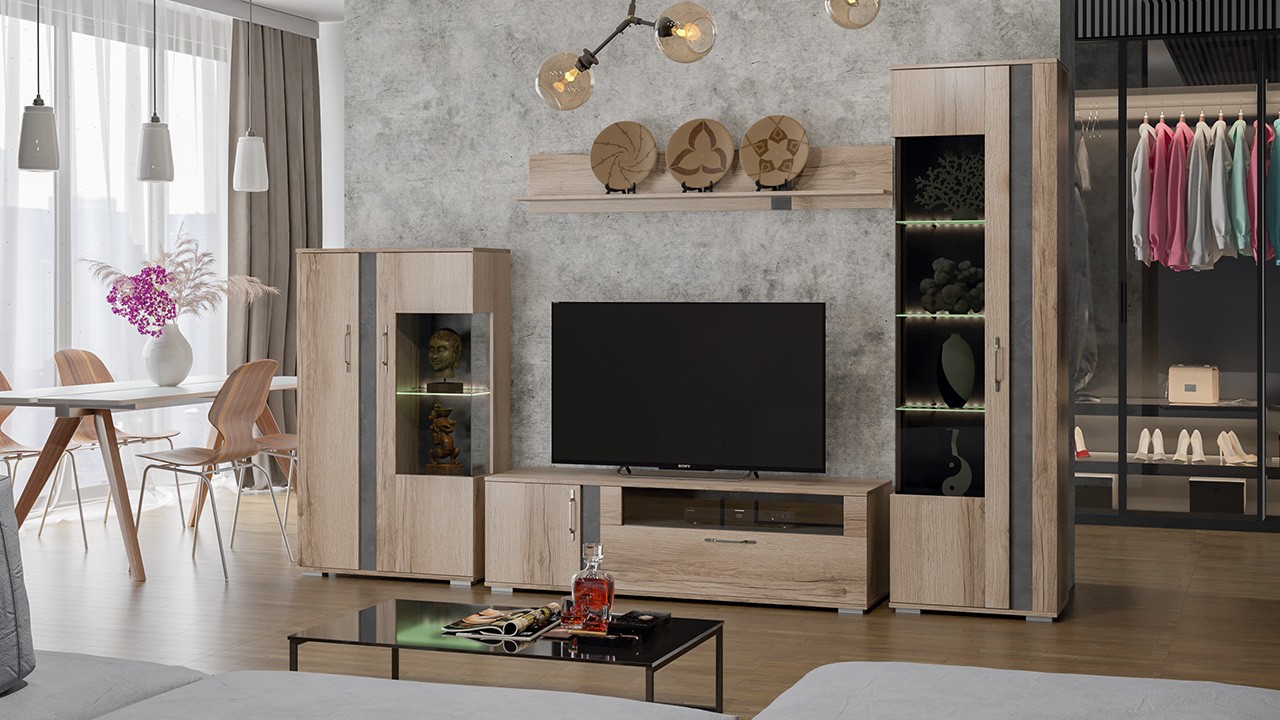 - Ниша под ТВ: Ширина - 1500 мм x Высота - 442 мм x Глубина - 463 мм